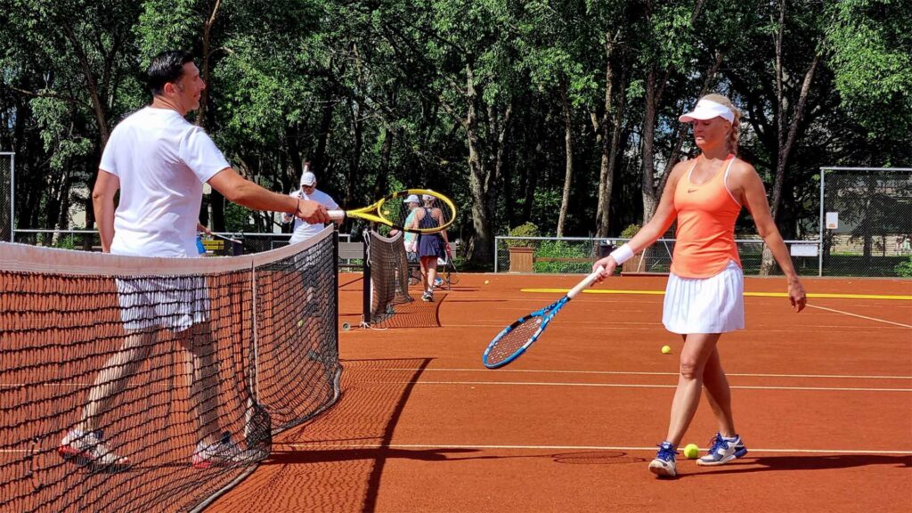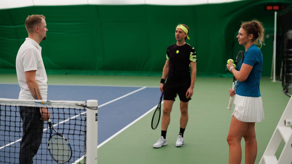 Seltskonnatennis on mitme väljaku peal toimuv trenn, kus saad end eri mängijatega proovile panna.